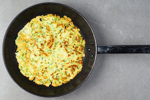 Wer zu frisch gebackenen Pfannkuchen ehrlich und aufrichtig „Nein!“ sagen kann, der möge jetzt vortreten. Niemand? Na, das hätten wir aber auch nicht erwartet – vor allem, wenn die leckeren Crêpes mit geraspelter Zucchini so lecker und gesund sind wie diese. Dank einem knackig-frischen Topping aus Radieschen und Mohn, aromatisch angemachten Wildkräutern und cremigem Ziegenkäse ist dies ein echter Superstar der Brunchfraktion!