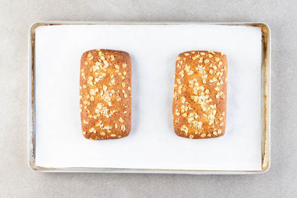 Die Brötchen auf einem mit Backpapier ausgelegten Backblech 4–5Min. im Ofen aufbacken. Etwas abkühlen lassen, dann schräg in dünne Scheiben schneiden.