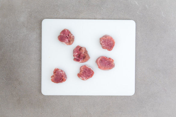 Das Fleisch trocken tupfen, ggf. von Sehnen befreien und in 10–12 Medaillons schneiden.