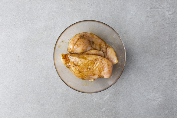 4EL Olivenöl mit der Gewürzmischung verrühren. Das Fleisch trocken tupfen, jeweils längs halbieren und mit dem Gewürzöl einreiben.