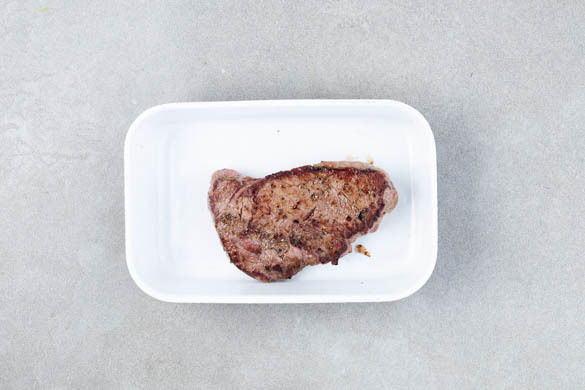 Das Fleisch mit etwas Küchenkrepp trocken tupfen, mit Salz und Pfeffer würzen und in einer großen Pfanne mit 1EL Olivenöl bei starker Hitze auf jeder Seite ca. 1Min. scharf anbraten. In eine Auflaufform geben.