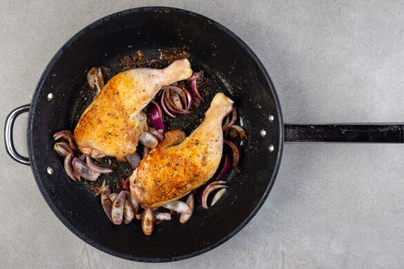 Eine wunderbar heimelige Stimmung kommt heute in deiner Küche auf. Denn im Ofen schmurgeln Kartoffelwürfel mit Aubergine und saftigen Hähnchenschenkeln in einer winterlich nach Zimt, Nelken und Muskatnuss duftenden Kokosmilch. Da dieses Festmahl fast ganz ohne dein Zutun auskommt, hast du Zeit, ein paar schöne Lichtlein anzuzünden, den Tisch nett einzudecken und dich über dein gelungenes Werk zu freuen. So macht Winter Spaß!