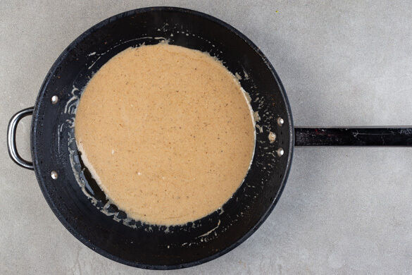 Das Fleisch aus der Auflaufform nehmen und beiseitestellen. Tipp: Das Fleisch ist gar, wenn sich das Beingelenk leicht vom Knochen lösen lässt. Die Sauce durch ein Sieb in die Pfanne gießen, 1TL Mehl einrühren und zum Kochen bringen. Die Sauce bei starker Hitze 7–12Min. einköcheln lassen, anschließend mit Salz und Pfeffer abschmecken.