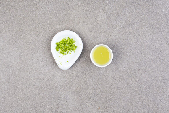 Die Limettenschale abreiben, dann die Limette halbieren und auspressen. In einer großen Schüssel den Limettensaft mit 1EL Pflanzenöl, 1EL hellem Essig, 1½TL Zucker und ½TL Salz verrühren, bis Zucker und Salz auflösen.