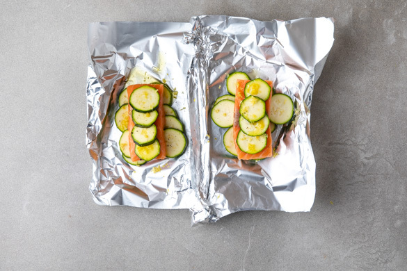 RS Lachs-Päckchen aus dem Ofen mit Zucchini und Kräuterkartoffeln