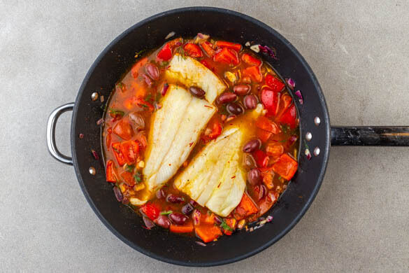 Lust auf einen bunten und deftigen Fischeintopf nach einem langen Tag? Das können wir sehr gut nachvollziehen. Vor allem, wenn der Eintopf wie hier mit zartem Seehechtfilet in einem würzigen Safransud mit Tomaten, Paprika und Oliven aufwarten kann und auf duftendem Basmatireis seinen großen Auftritt hat. Kein Wunder, dass die marokkanische Küche so beliebt ist!