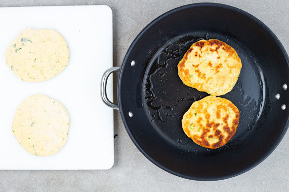 Den Teig noch einmal durchkneten und in 8 gleich große Portionen aufteilen. Ggf. etwas mehr Mehl hinzugeben. Jede Portion zu einem dünnen Fladen ausrollen und diese in einer weiteren großen Pfanne mit 1–2EL Pflanzenöl bei mittlerer Hitze portionsweise auf jeder Seite ca. 2Min. goldbraun anbraten.