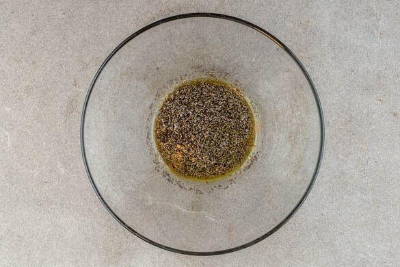Den Mohn mit 2EL Olivenöl, 2EL Balsamicoessig und 2TL Honig zu einem Dressing verrühren.