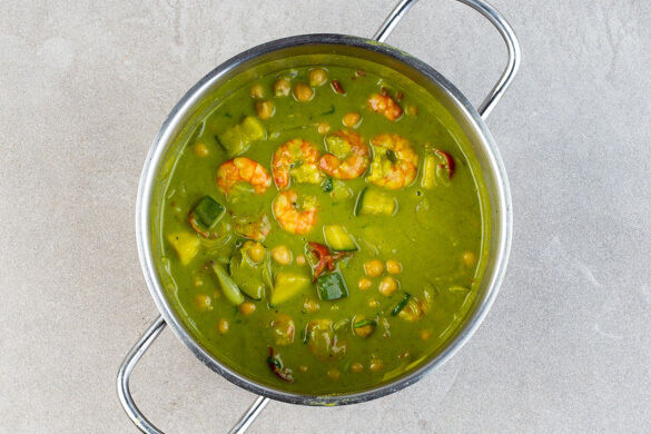 Grünes Garnelen-Kichererbsen-Curry Low Carb mit Zucchini und Spinat