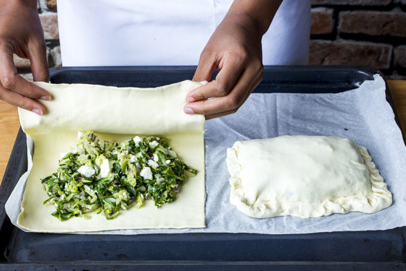 Für diese köstlichen Blätterteigtaschen wird zarter Babyspinat mit Feta, Gewürzen und frischen Kräutern unter gebratene Zucchini gemischt und als aromatische Füllung in Teig verpackt im Ofen gegart. Da bleibt garantiert kein Krümelchen übrig!