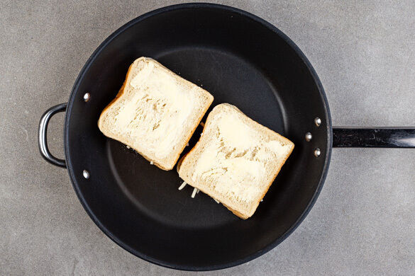 Die Toastscheiben auf einer Seite mit insgesamt 4EL Margarine bestreichen. 4 Scheiben umdrehen und mit dem Käse bestreuen. Die übrigen Toastscheiben mit der bestrichenen Seite nach oben darauf legen. Die Toasts in einer großen Pfanne bei mittlerer Hitze auf jeder Seite in 2–3Min. goldbraun braten. Tipp: Ggf. eine zweite Pfanne benutzen, damit es schneller geht.