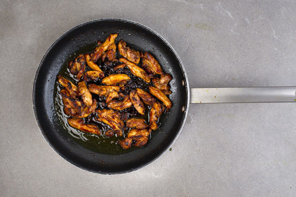 Das Fleisch in einer mittelgroßen Pfanne mit 1EL Olivenöl bei mittlerer Hitze rundum 5–7Min. anbraten.