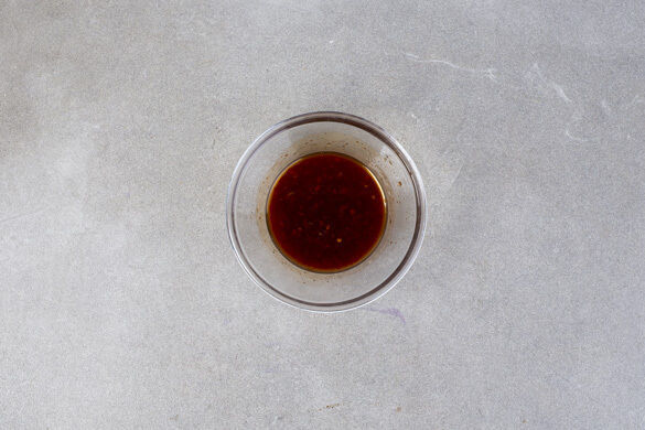 Die Sojasauce mit der Sweet-Chili-Sauce, dem Sesamöl, ca. ⅓ des Sambal Badjaks oder mehr nach Geschmack, 1–2EL Limettensaft und 1TL Limettenschale verrühren.