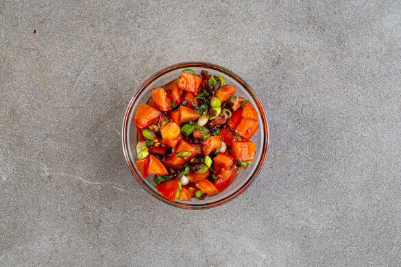 Loaded Fries sind eines der besten Dinge, die je erfunden wurden: Pommes mit reichlich Toppings. Besser geht’s nicht, oder? Wir backen uns diesmal knusprige Süßkartoffelpommes im Ofen und garnieren sie im Anschluss mit einer vegetarischen Tofu-„Hacksauce“ im Tex-Mex-Style. Danach kommen noch gebratene Paprika und eine süßliche, mit Pflaumenchutney verfeinerte Tomatensalsa obendrauf. Ein Hauch frische Limette, fertig – mmmh!