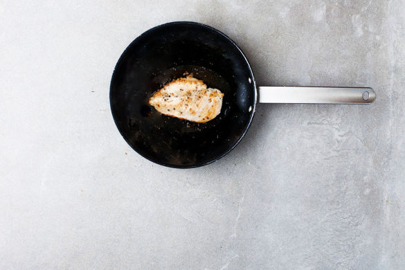 Das Fleisch trocken tupfen und in derselben Pfanne mit 2EL Olivenöl bei starker Hitze auf jeder Seite 3–4Min. scharf anbraten, bis das Fleisch durch ist. Mit Salz und Pfeffer würzen.