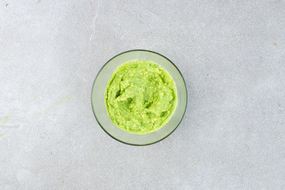 Die Guacamole nach Geschmack mit Salz und Pfeffer verfeinern.