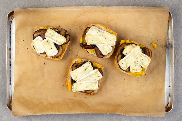 Ein Bissen und du bist im siebten Himmel – was, das glaubst du nicht? Na, dann mach dich auf eine Überraschung gefasst, denn die Kombination aus knusprigem Baguette, fruchtigem Mangochutney und cremig-schmelzigem Camembert überzeugt selbst den größten Zweifler! Dazu noch süß-sauer eingelegte Rote Bete, leicht bitterer Rucola und in Sojasauce gebratene Champignons – und das Glück ist vollkommen!