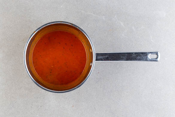 Den Backofen auf 240°C (220°C Umluft) vorheizen. Das Tomatenmark mit 2TL Gewürzmischung und 2EL Mehl in einem mittelgroßen Topf mit 1EL Pflanzenöl verrühren und bei mittlerer Hitze ca. 1Min. anbraten.