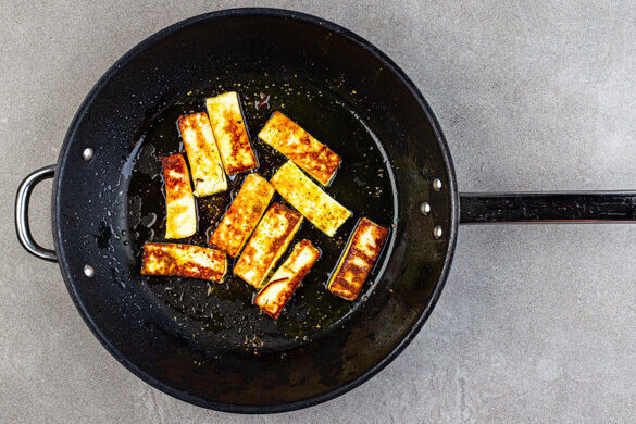 Ofengemüse ist ja so schon eine absolute Köstlichkeit. Mit leckerem Blumenkohl und Aubergine, vor dem Backen mit Curry verfeinert, dazu gebratene Streifen aus Paneer-Käse, die außen knusprig und innen schön weich sind – hach, das ist schon fein! Dazu gibt es einen Tomatensalat mit Bohnen für ein nahrhaftes Proteinplus sowie als sinnbildliche Kirsche on top ein wachsweich gekochtes Ei. Guten Appetit!
