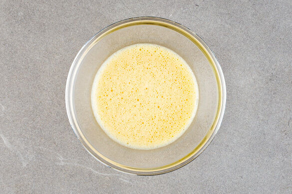 Den restlichen Limettensaft, 2EL Mehl, 2EL Wasser und 1TL Salz glatt rühren. Die Eier zugeben und solange verrühren, bis die Eiermischung schaumig ist. Eventuell entstandene Klümpchen mit den Fingern oder einem Löffel zerdrücken. Mit 1 Prise Pfeffer würzen.