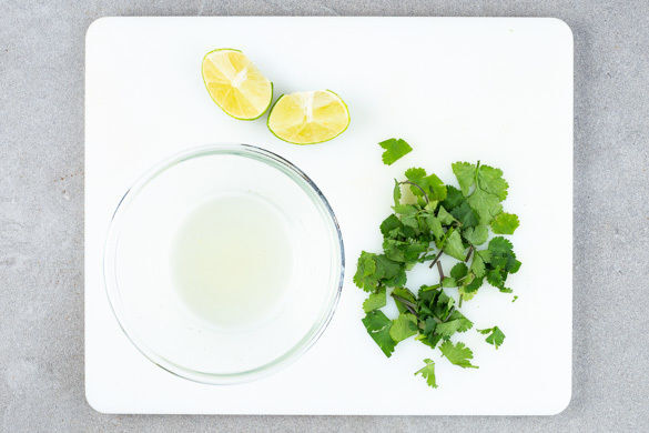 Die Limette halbieren und eine Hälfte auspressen, die andere Hälfte in Spalten schneiden. Den Koriander samt Stängeln grob schneiden. Das Curry mit Salz und 1EL Limettensaft abschmecken und mit dem Reis anrichten. Mit dem Koriander garnieren und mit den Limettenspalten servieren.