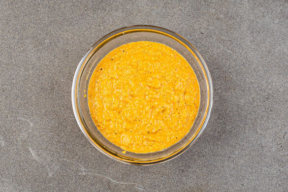 Den Mais, die Hefeflocken, die Gewürzmischung und 200ml Wasser zu den Schalotten geben und bei mittlerer Hitze ca. 3Min. köcheln lassen, bis der Mais weich ist. Mit je 1 Prise Salz und Pfeffer würzen. Die Cashews abgießen und mit der Mais-Mischung in einem hohen Gefäß pürieren, dabei ggf. löffelweise Wasser zugeben, bis eine dickflüssige Sauce entsteht.