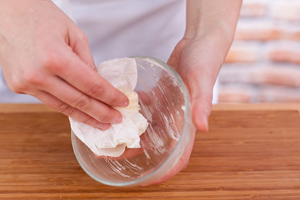 Ofen auf 170°C Umluft vorheizen. Die ofenfesten Schalen mit 20g Butter einfetten. Restliche Butter entweder in der Mikrowelle oder in einem kleinen Topf schmelzen, jedoch nicht bräunen, dann leicht abkühlen lassen.