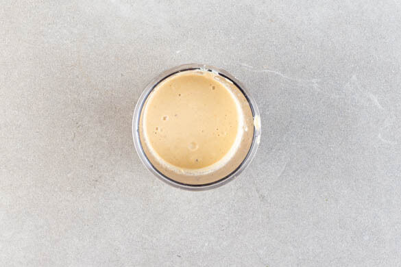 Die Cashews in einem hohen Püriergefäß mit 100ml heißem Wasser einweichen. Die Limette halbieren und auspressen.