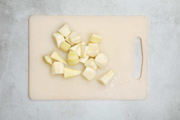 Die Äpfel schälen, entkernen und in kleine Würfel schneiden.