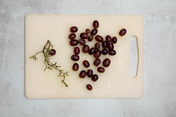 Für den Erdnussbutter-Birnen-Shake ca. 2/3 der Trauben abzupfen. Die restlichen Trauben werden für den Shake nicht benötigt und können als Snack verzehrt werden.