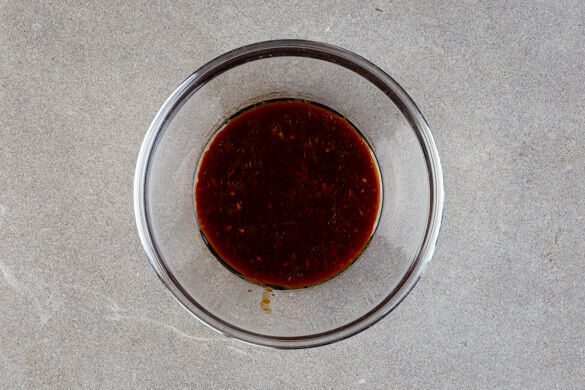 Die Hoisinsauce mit der Ingwer-Würzsauce, 3EL Essig und 100ml Wasser verrühren.
