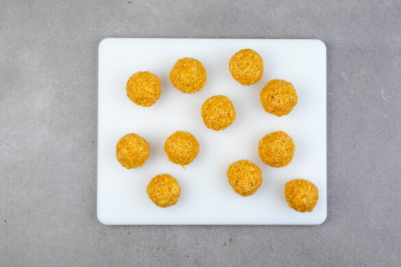 Diese köstlichen Reisbällchen erinnern an italienische Arancini und werden wie diese aus gekochtem Reis zubereitet. Hier enden aber auch schon die Gemeinsamkeiten, denn der mit asiatischer Currypaste verfeinerte Reis und das begleitende cremige Kokos-Gemüse-Curry verweisen ganz schnell in eine ganz andere Richtung. Limettensaft und frischer Koriander sorgen für den kulinarischen Feinschliff.