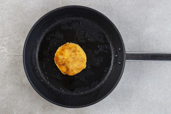 Auf einem tiefen Teller 1 Ei verquirlen. Die Semmelbrösel auf einem weiteren Teller mit je 1 kräftigen Prise Salz und Pfeffer würzen. Die Camemberts erst im Ei, dann in den Semmelbröseln wenden und den Vorgang wiederholen. In einer mittelgroßen Pfanne mit 2EL Olivenöl bei starker Hitze unter Wenden in 4–6Min. von allen Seiten goldbraun ausbacken. Auf etwas Küchenkrepp abtropfen lassen.