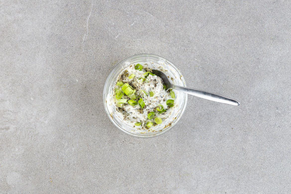 Die Kapern in einem Sieb abspülen, abtropfen lassen und fein hacken. Mit 4EL Mayonnaise, dem Joghurt und der ½ der Lauchzwiebeln verrühren und die Remoulade mit Salz und Pfeffer abschmecken.