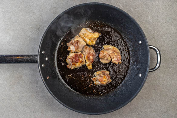 Die Hitzezufuhr erhöhen und das Fleisch unter gelegentlichem Wenden 3–5Min. karamellisieren. Dabei immer wieder mit einem Löffel Sauce über das Fleisch träufeln.