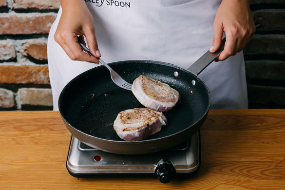 Es gibt Klassiker, die kommen niemals aus der Mode. So auch diese saftig-zarten Schweinesteaks, die von einer herzhaften Kartoffel-Speck-Pfanne mit gebratenem Apfel begleitet werden. Was braucht es mehr für ein unkompliziertes Wohlfühlessen?
