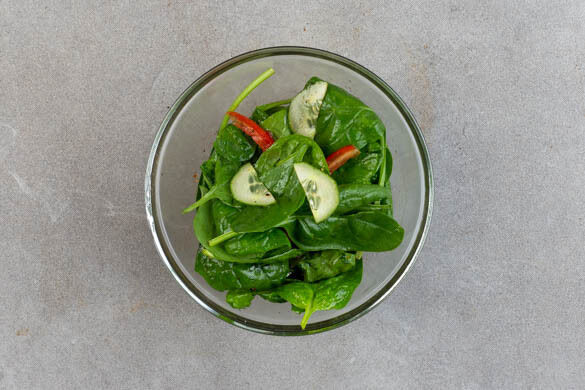 1EL Olivenöl, 1EL Balsamicoessig sowie je 1 Prise Salz und Pfeffer zu einem Dressing verrühren. Die Gurke längs halbieren und quer in dünne Scheiben schneiden. Die Tomate in dünne Spalten schneiden und mit den Gurken und dem Dressing vermengen. Mit Salz und Pfeffer abschmecken.