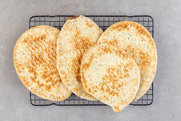 Eine große Pfanne ohne Zugabe von Fett bei mittlerer Hitze erwärmen. Die Bazlama einige Minuten auf beiden Seiten erwärmen.