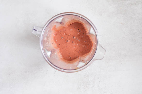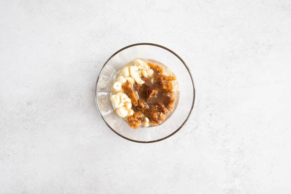 Die Cashews grob hacken und zusammen mit den getrockneten Feigen in 100ml warmem Wasser einweichen. Vor dem Pürieren in einem Sieb abtropfen lassen.