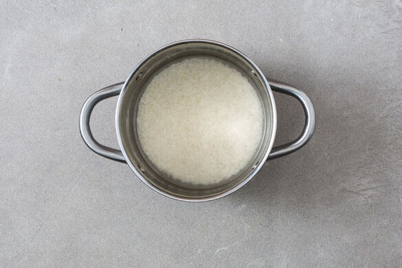 Den Backofen auf 240°C (220°C Umluft) vorheizen. In einem mittelgroßen Topf 600ml leicht gesalzenes Wasser zum Kochen bringen. Den Reis in einem Sieb kalt abspülen, bis das Wasser klar bleibt. Sobald das Wasser kocht, den Reis hineingeben und abgedeckt bei niedrigster Hitze 10–12Min. kochen, bis das Wasser aufgesogen und der Reis gar ist. Noch ca. 5Min. ohne Hitzezufuhr ziehen lassen.