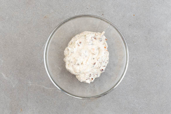 Die getrockneten Tomaten grob schneiden. Die ½ des Käses fein reiben. Den Knoblauch schälen und ebenfalls fein reiben. Die Crème fraîche mit den getrockneten Tomaten, dem geriebenen Käse, dem Knoblauch und 1EL Olivenöl verrühren. Den Aufstrich mit Salz und Pfeffer abschmecken.
