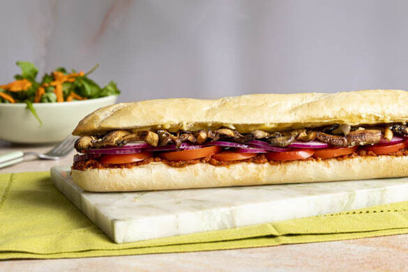Es gibt Abendbrot! Oder Mittagsbrot. Oder vielleicht sogar Frühstück? Ist ja eigentlich auch egal, wann du es genießt – jedenfalls servieren wir ein leckeres Sandwich mit knusprigem Baguette. Das bestreichen wir mit einem aromatischen Pesto und belegen es mit gebratenen Austernpilzen, Tomaten, Zwiebeln und Käse. Anschließend darf es eine warme Sauna im Ofen nehmen, damit der Käse schööön schmilzt. Dazu: knackiger Rucolasalat!