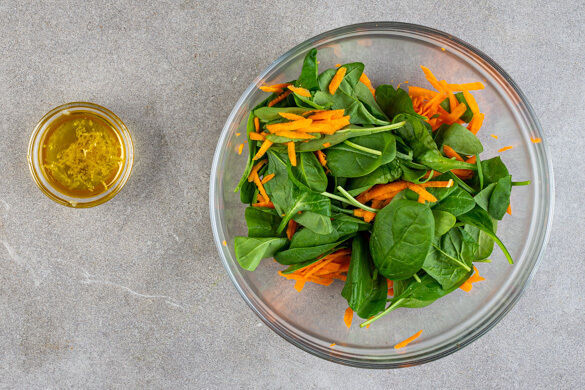 Die Karotte ggf. schälen und grob raspeln. 1TL Zitronenschale mit 2EL Zitronensaft, 1TL Honig oder Zucker, 4EL Olivenöl und 2EL Wasser zu einem Dressing verrühren. Den restlichen Spinat, die Karotten und das Dressing zu einem Salat vermengen und zu den Panini servieren.