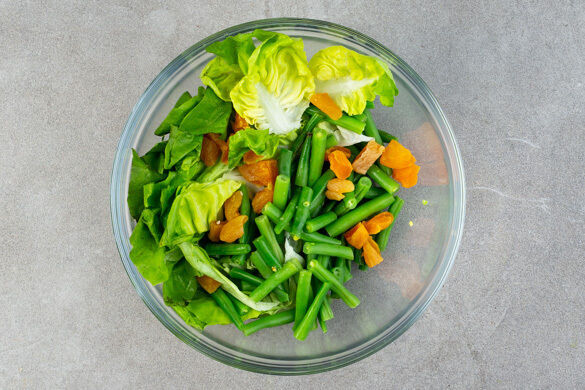 Der Lenz ist da! Und wo der ist, sind auch Sommer und Bikini-Saison nicht weit. Wir feiern den Wechsel der Jahreszeiten mit diesem leckeren Low-Carb-Genuss: Der bunte Salat mit Bohnen, gegrillter Zucchini und getrockneten Aprikosenstückchen wird mit einem fruchtig-pikanten Dressing angemacht; und der Camembert in Kichererbsenmehl, Sonnenblumenkernen und Sesam paniert, ehe er lecker frittiert wird. Schlechtes Gewissen? I wo!