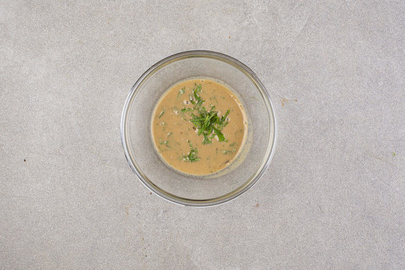 Die Minzeblätter von den Stängeln zupfen und in feine Streifen schneiden. Die Petersilie samt Stängeln fein hacken. Den Knoblauch aus dem Bulgur nehmen und fein würfeln. Den Bulgur nach Geschmack mit der Gewürzmischung verfeinern und die Petersilie unterheben.