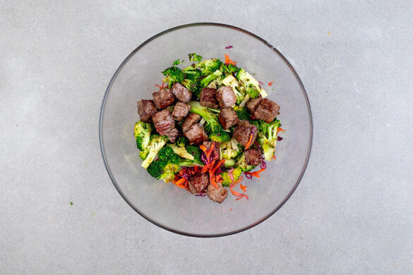 Das cremig-pikante Erdnussdressing ergänzt perfekt den knackigen Weißkohlsalat mit Brokkoli und zarten Bio-Rindfleischstreifen. Die Kombination aus Sambal Badjak, Erdnussbutter und Kokosmilch ist einfah zu köstlich! Etwas frischen Koriander und geröstete Erdnüsse dazu und fertig ist dein neues Lieblingsgericht!