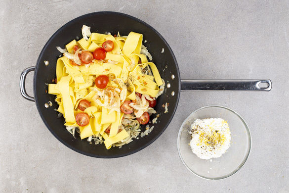 Was aussieht wie vom Edel-Italiener, ist ruckzuck selbst geschafft: Für die leckeren breiten Nudeln zerschneidest du nämlich einfach frische Lasagneblätter. Eine sommerliche Sauce mit Fenchel, Kirschtomaten und Kräutern sowie cremig-weicher Ricotta runden das Gericht vorzüglich ab. Pasta geht einfach immer!