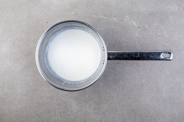 Die restliche Kokosmilch in einem kleinen Topf mit 1TL Zucker und 1 Prise Salz aufkochen und 2–3Min. etwas dicklich einkochen lassen. Die Sauce nach Geschmack mit 1EL Limettensaft und ggf. mehr Zucker verfeinern.