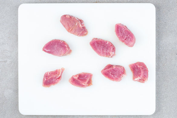 Das Fleisch trocken tupfen und in 6–8 gleich große Medaillons schneiden.