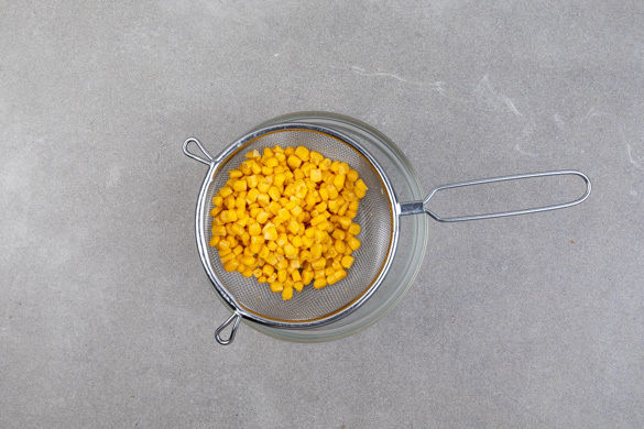 Den Mais in ein Sieb abgießen und abtropfen lassen.